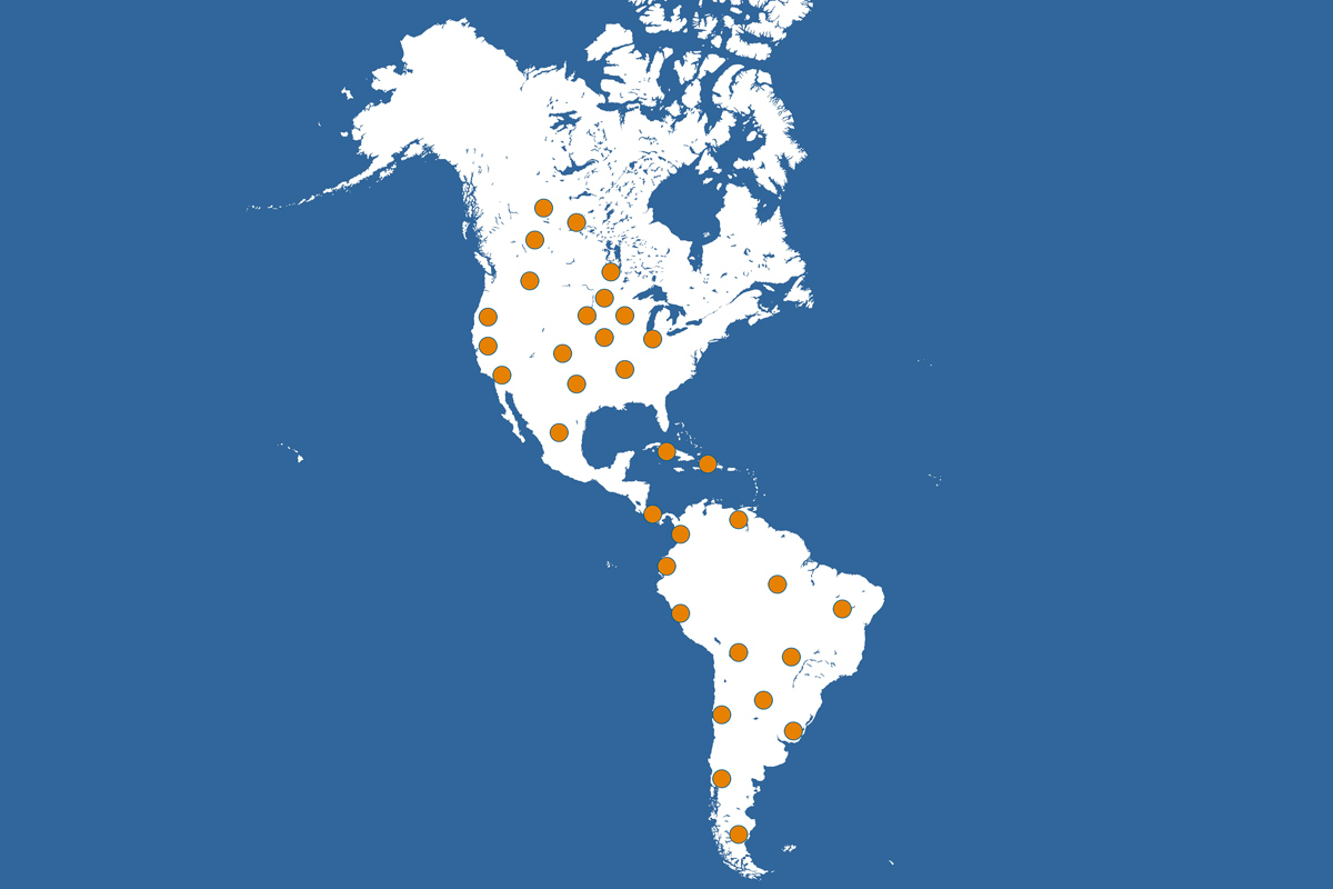 • Argentine • Bolivie • Brésil • Canada • Chili • Colombie • Cuba • République dominicaine • Équateur • États-Unis • Mexique • Panama • Paraguay • Pérou • Uruguay • Venezuela •